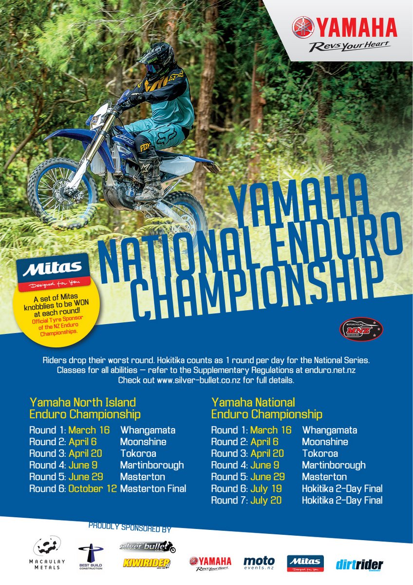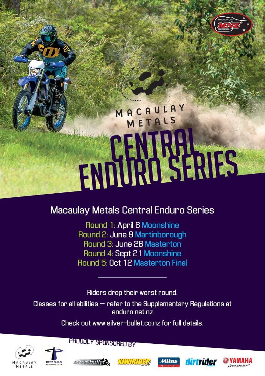 Classes: - See the Supplementary Regulations, Classes to cater for everyone including the Intro Trail rider classes (non-championship). For more information and preregistering see http://enduro.net.nz/
