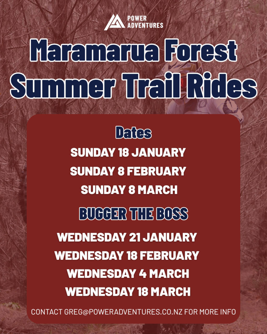 If it is too dry (Fire risk) there could be a cancellation so before heading out, check the Power Adventures facebook page or ring the phone no 0274454429 for an update.