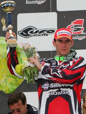 Coppins went down in the second turn of race two as he could not avoid hitting a fallen, fellow Honda rider, Pascal Leuret. The heavens had opened in the meantime and Coppins’s hopes of a GP podium looked dismal. ‘Lizzard’ took the bit between his teeth and started his charge through the pack. Within two laps he had broken the top ten and was posting the fastest lap time with ease. By the halfway mark Coppins had amazingly rocketed into third position and was rapidly closing down the leading duo of Pichon and Everts. Pichon made a mistake with five laps to go and handed Everts the lead. Coppins could smell the fumes of the Frenchman’s Honda and having lost his goggles due to the rain, he had to avoid getting roosted by Pichon by changing his racing lines. Still he pushed on and started to pressurize Pichon for second place. As the chequered flag fell, the CAS Honda rider had done all in his power to rebound from stone last to an awesome third position.