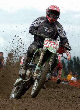 FEBRUARY 12, 2007: A streak of bright green hit the podium at the Valley Motocross Championships at Patetonga, near Morrinsville, at the weekend.