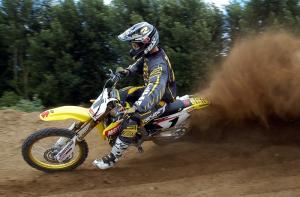 He raced a Suzuki RM-Z250 to victory on the small bike class at Woodville but stepped back up to the open class machine, the booming Suzuki RM-Z450, on Sunday and promptly threw up dust from his rear wheel for everyone else to taste.